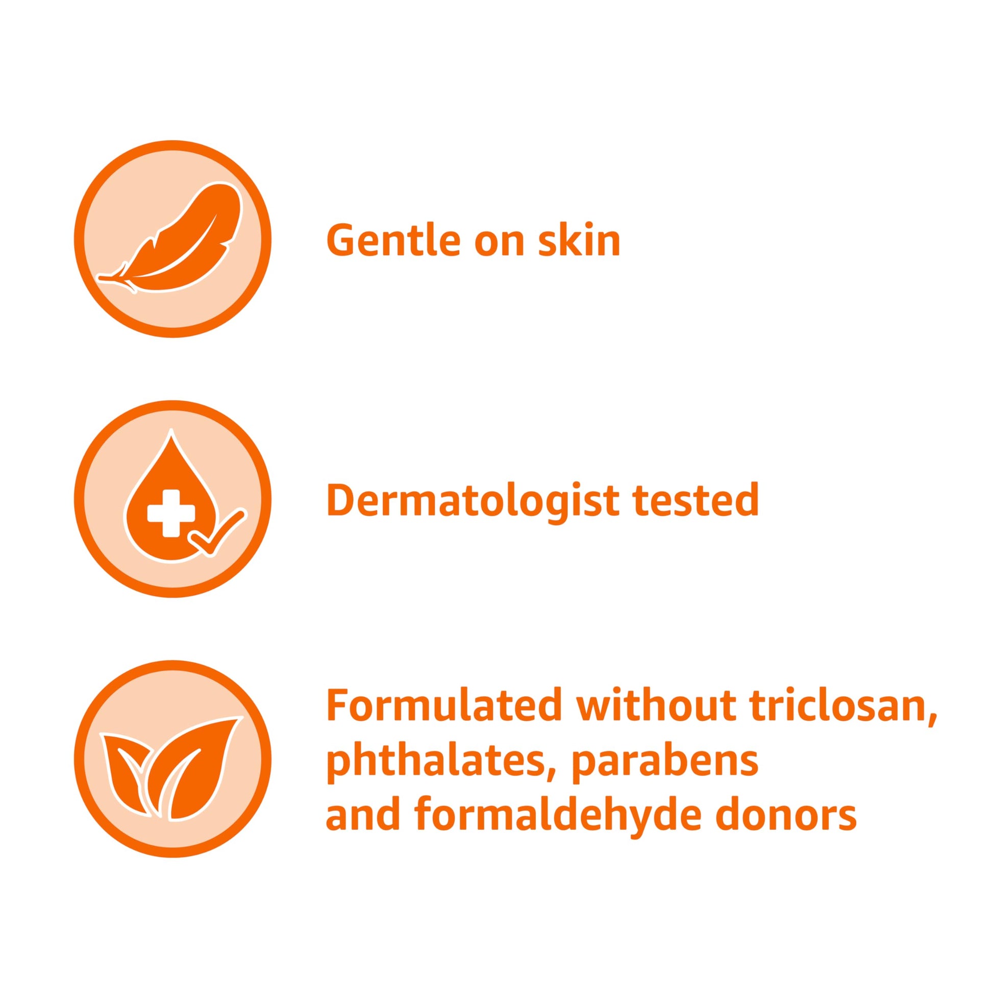 - Dermatologist tested; free from triclosan, phthalates, parabens and formaldehyde donors; pH balanced