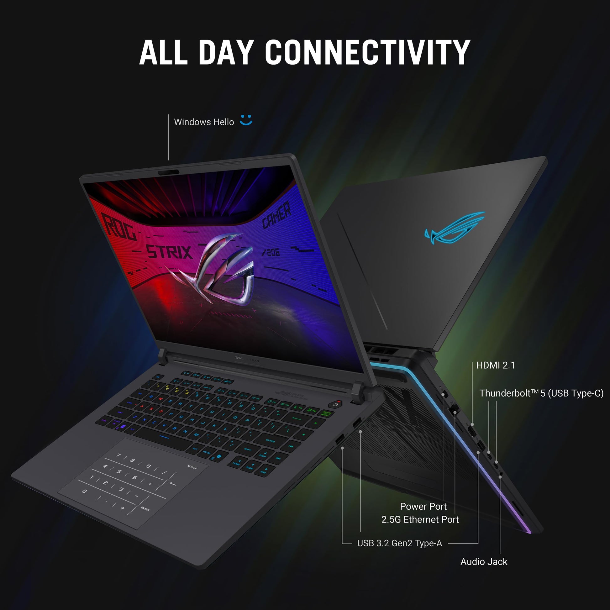 ASUS ROG Strix G16 (2025) Gaming Laptop, 16” ROG Nebula 16:10 2.5K 240Hz/3ms, NVIDIA® GeForce RTX™ 5080, Intel® Core Ultra 9 275HX, 32GB DDR5, 1TB PCIe Gen 4 SSD, Wi-Fi 7, Windows 11 Home, G615LW-AS96