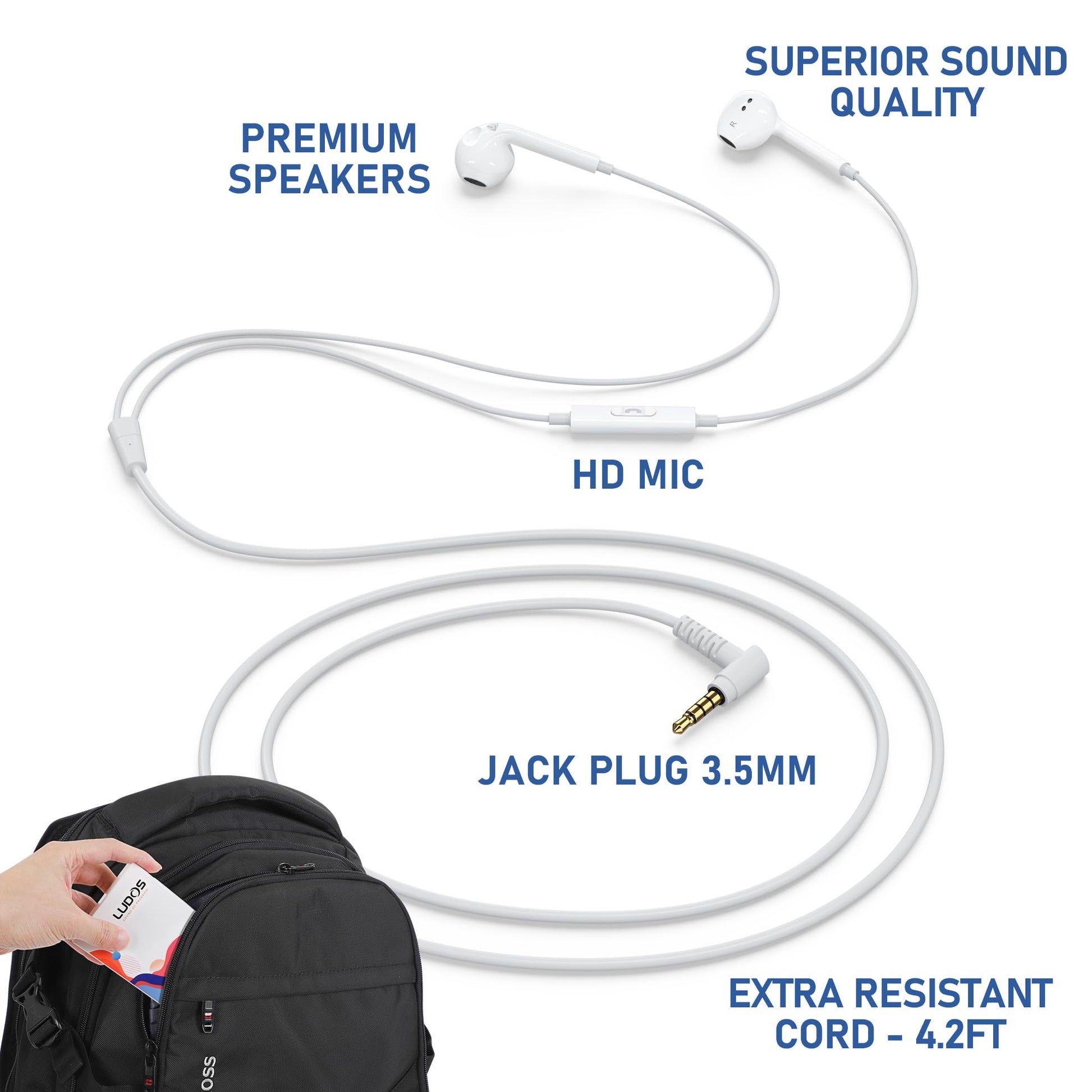LUDOS ZENITH Wired Earbuds in-Ear Headphones, 2 Years Warranty, Earphones with Microphone, Corded for 3.5mm Jack Ear Buds for iPhone, Samsung, Computer, Laptop, Kids, School Students, Women, Small Ear