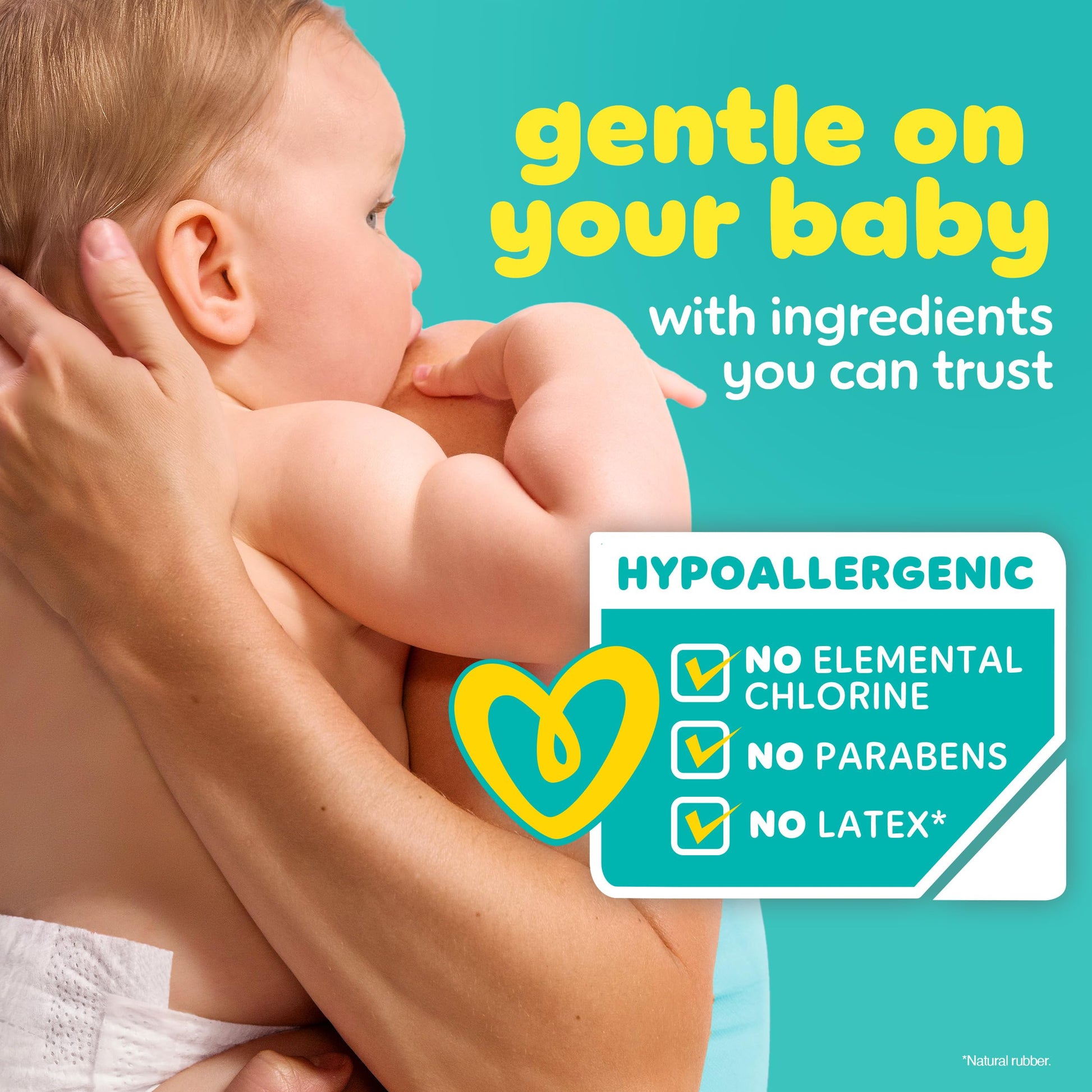 Details: Give your baby everything they need from a diaper with Pampers Baby-Dry. The diapers with Dual Leak-Guard Barriers that give you up to 100% leakproof nights and happy mornings. That’s a diaper 2x drier than Huggies Snug and Dry. Protect your baby’s skin from wetness and mess with the Dry-Weave liner and know when it’s time for a change with the Wetness Indicator. The stretchy sides on Pampers Baby-Dry Disposable Diapers give your baby a secure and comfy fit that helps prevent leaks for more days full snuggles and free of mess. Pampers, from the #1 pediatrician-recommended brand, consciously crafts every diaper with your baby’s wellness in mind, Pampers Baby-Dry Diapers are hypoallergenic and contain no elemental chlorine, parabens, or latex. Use Baby-Dry diapers with our Pampers- Sensitive Wipes to keep your baby’s skin healthy. Pampers Baby-Dry comes in all the baby diaper sizes your baby needs at every stage—from newborn size to sizes 1–7. Just size by weight to find your baby’s perfect fit. Your number one priority is your baby’s well-being. Ours is giving you the best solution so you can focus on loving them. Pampers Baby-Dry Diapers come in all sizes, from newborn size (up to 10 lbs.), to size 1 (8–14 lbs.), size 2 (12–18 lbs.), size 3 (16–28 lbs.), size 4 (22–37 lbs.), size 5 (27+ lbs.), size 6 (35+ lbs.), and size 7 (41+ lbs.).