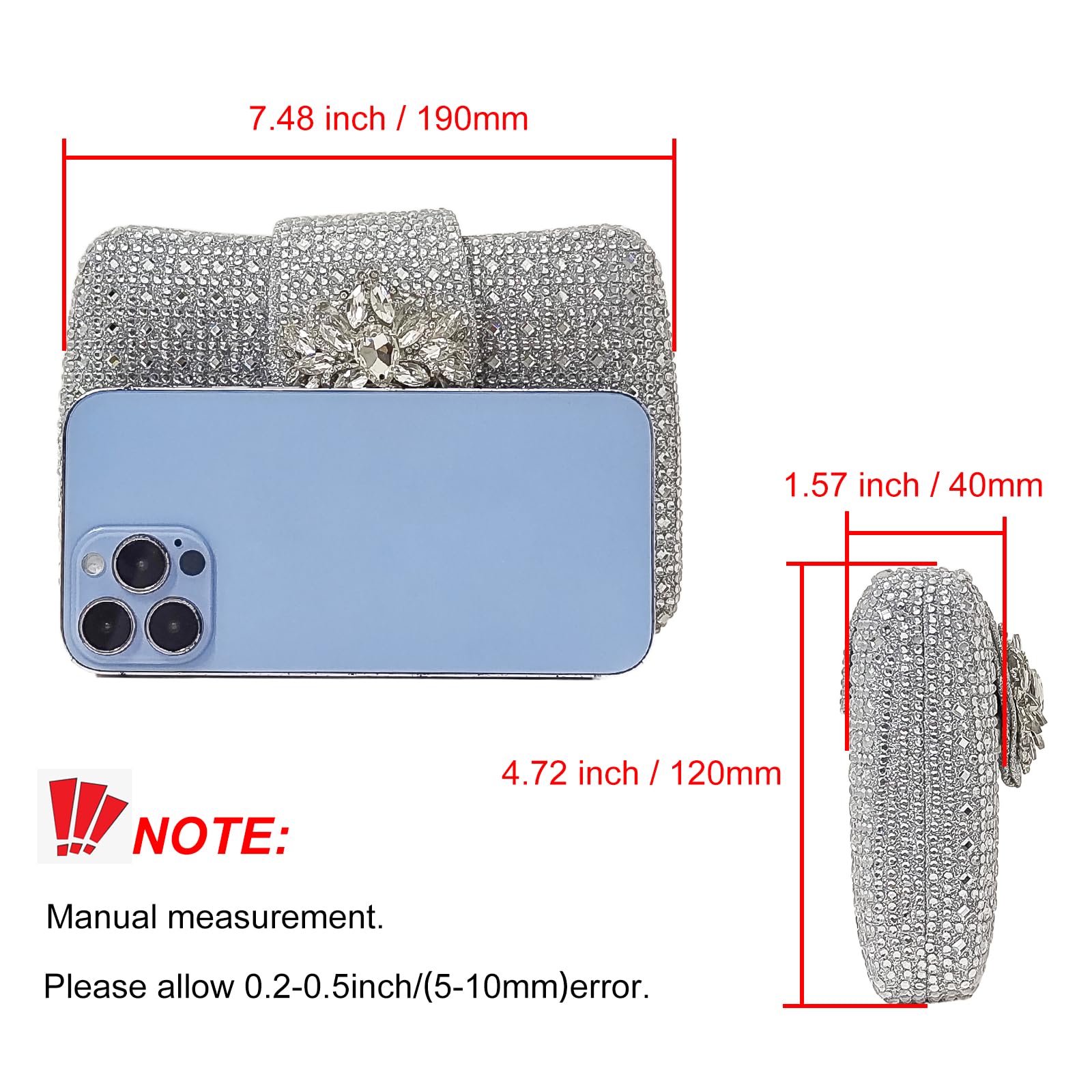 - ◆Size & Capacity.◆ Dimensions: L7.48 x H4.72 x W1.57 inches, about 19 x 12 x 4 cm.Handle length: 7.87inch (about 20cm). This women's evening bag can hold your mobile phone, lipstick, keys, foundation case, small mirror, other small things.