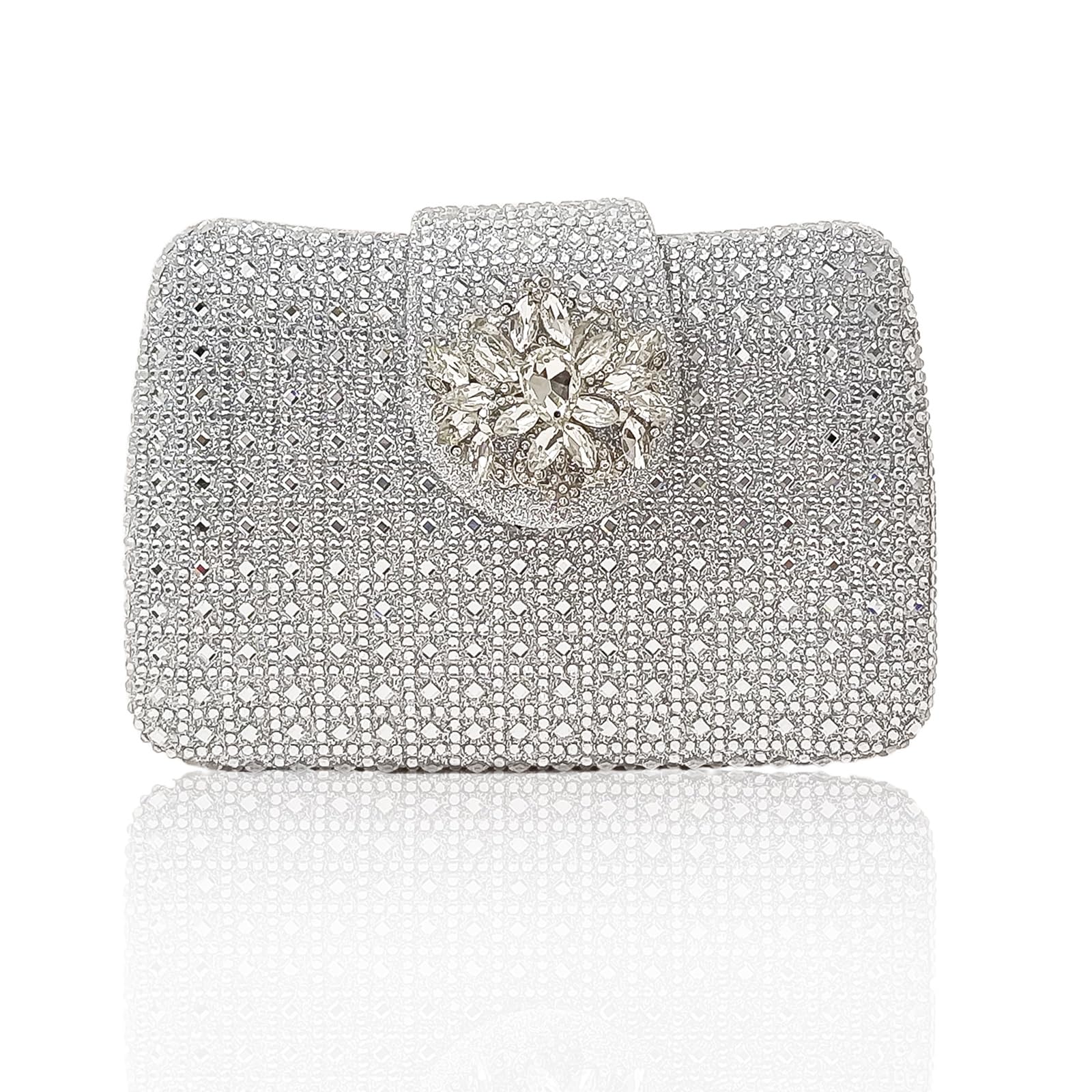- ◆Unique Rhinestone Floral Evening Bag.◆ The evening bag is composed of square and round rhinestones of different sizes in a shiny, unique trapezoidal shape, elegant and stylish.Magnetic clasp, with floral rhinestone embellishment in the center.
