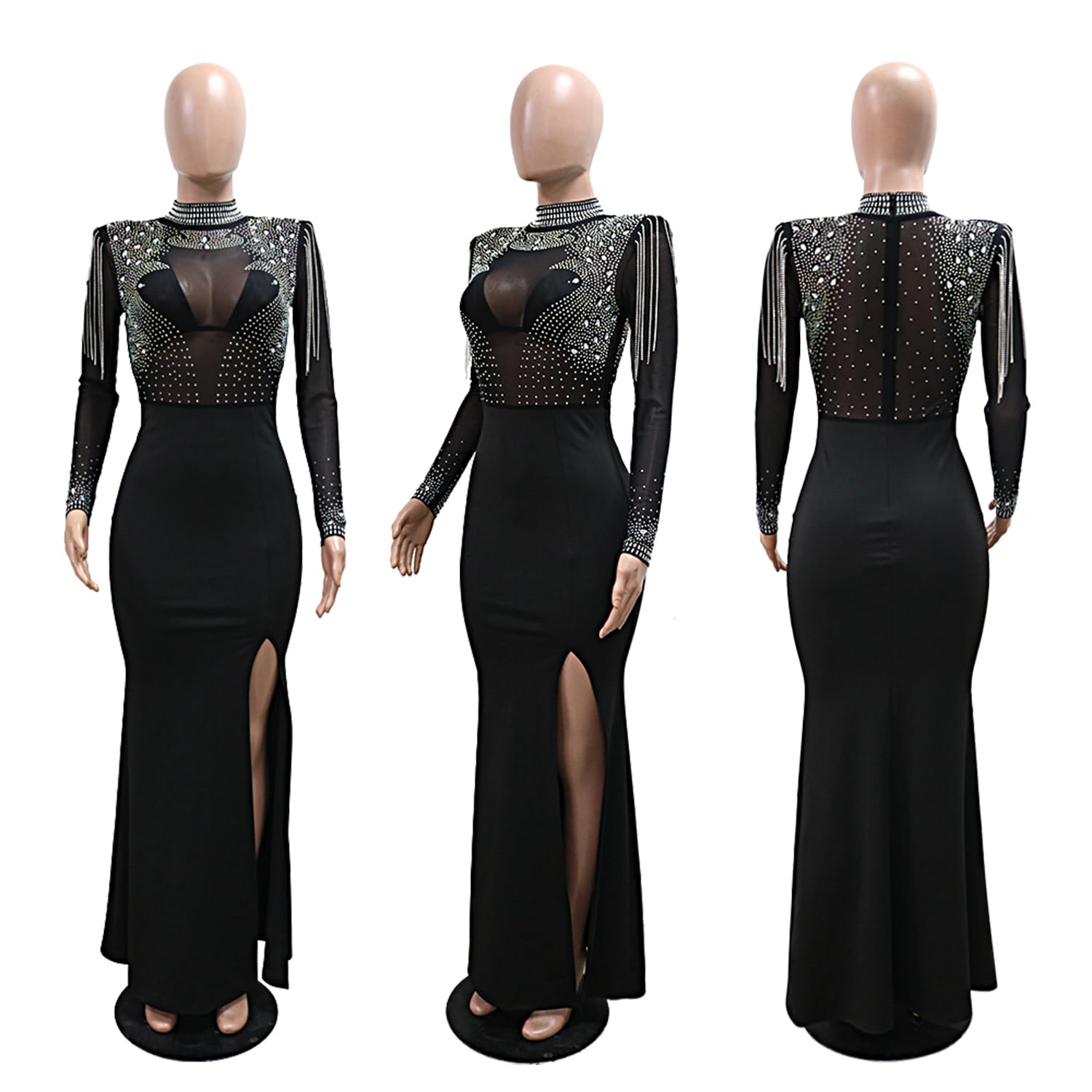 - Material: Women's sexy club night out dress, Sparkling tassel chains on the shouldersPerspective of mesh on rhinestone dress which makes the texture more soft and comfortable. The sagging sense of skirt makes women walk more confident and charming.