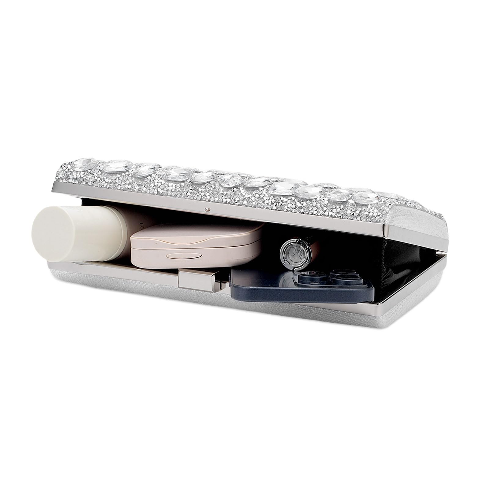 YYW Women Rhinestone Clutch Purse Evening Bag Sparkly Crystal Beaded Handbag for Party (Silver)
