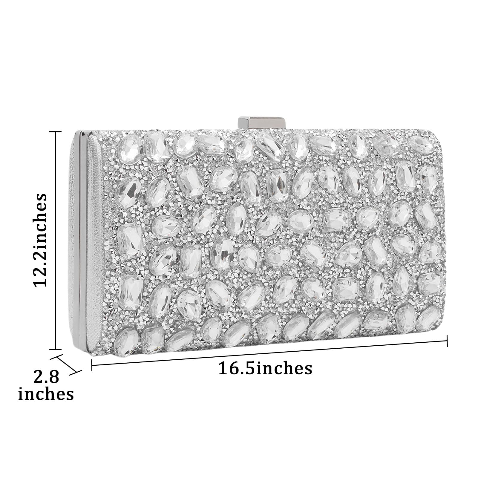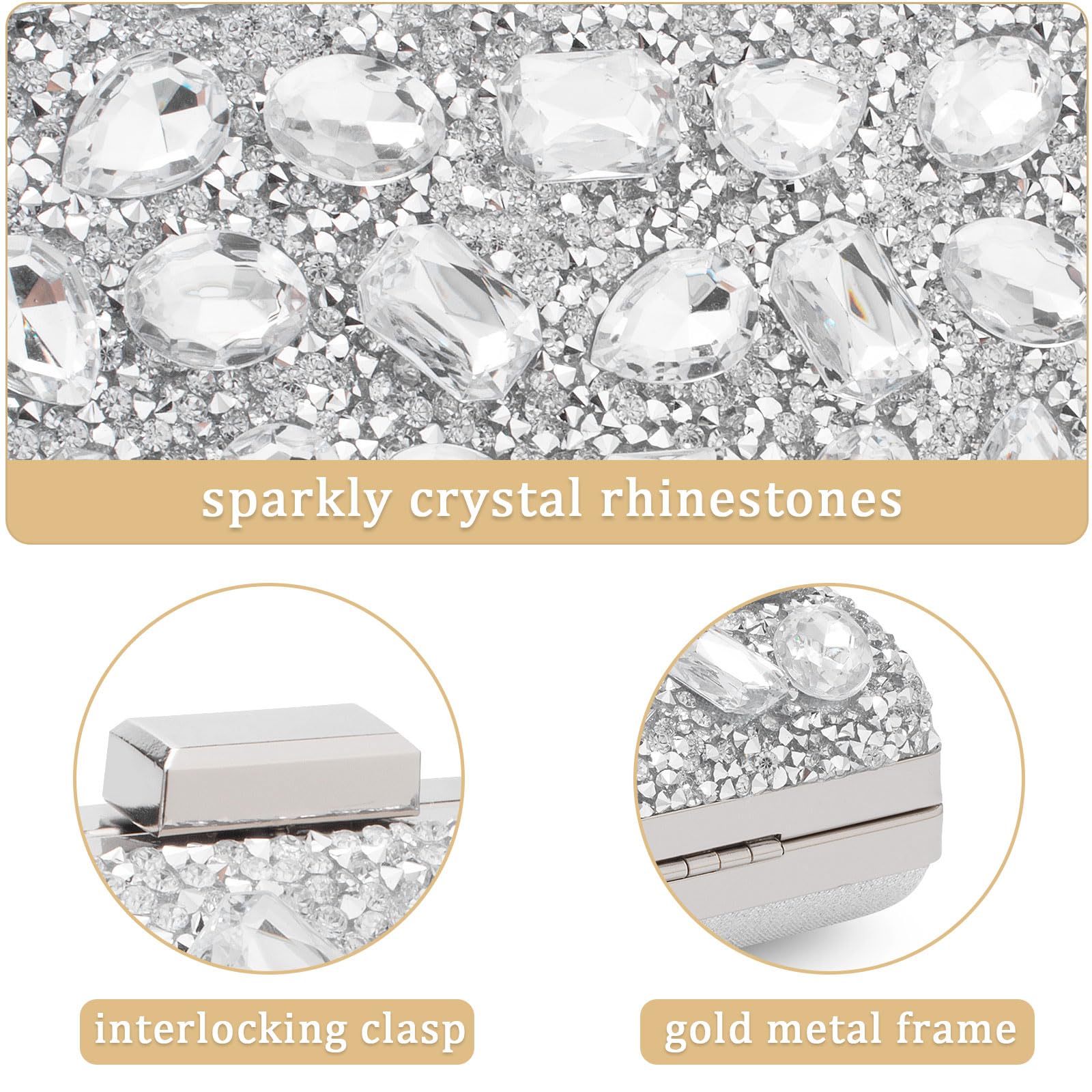 - Color: The evening handbag comes in black, blue, silver and rainbow colorful rhinestones. It can also be used as a clutch purse, shoulder bag or crossbody bag depending on your outfit and needs.